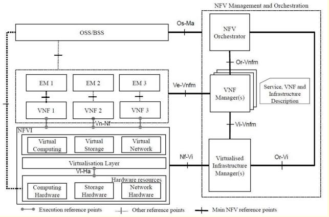 圖示:ETSI標準中NFV架構(gòu)圖,開放性測試成為NFV大規(guī)模商用的前提條件