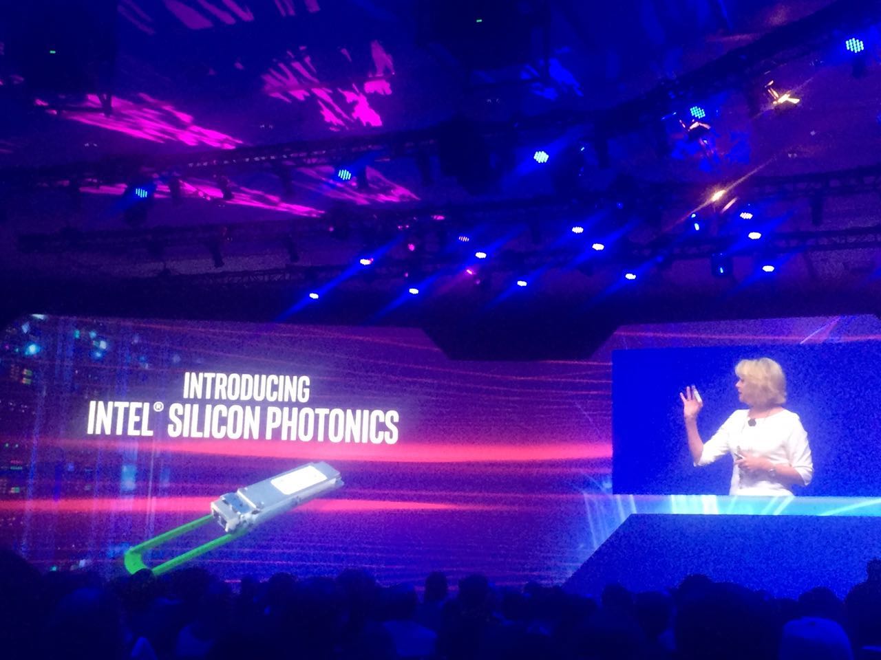 在第二天上午的主題演講環(huán)節(jié),英特爾公司執(zhí)行副總裁、數(shù)據(jù)中心事業(yè)部總經(jīng)理柏安娜宣布,首個(gè)英特爾硅光電子100G光學(xué)收發(fā)器現(xiàn)已投入商用。