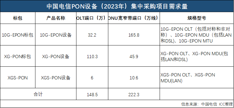 中國電信啟動PON設(shè)備(2023年)集采 10G PON OLT端148.5萬個
