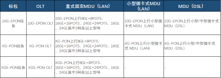 中國電信要求,投標(biāo)產(chǎn)品應(yīng)是成熟穩(wěn)定的產(chǎn)品,必須具備下表所列的設(shè)備型號,10G-EPON設(shè)備、XG-PON設(shè)備需提供相應(yīng)型號合法有效的電信設(shè)備進(jìn)網(wǎng)許可證: