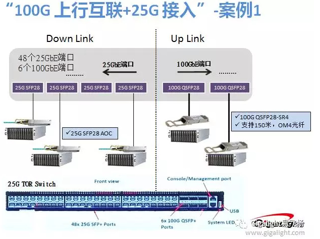 在當(dāng)前的網(wǎng)絡(luò)使用中,25G以太網(wǎng)互聯(lián)應(yīng)用主要體現(xiàn)在以下兩種: