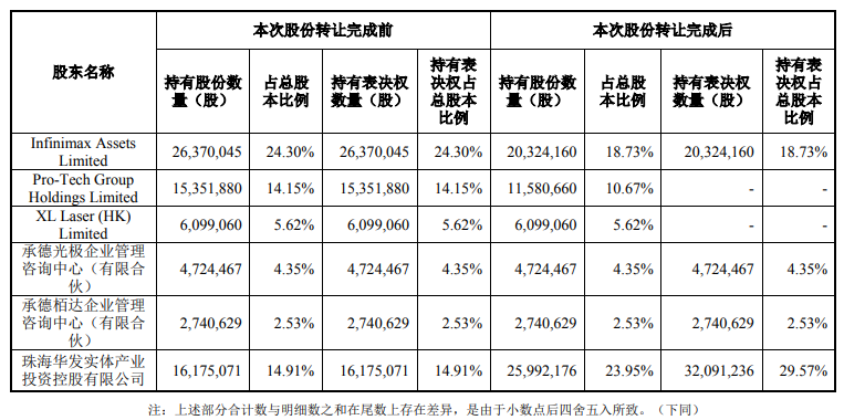 ICC訊 (編輯:Nicole) 珠海光庫(kù)科技股份有限公司(以下簡(jiǎn)稱“公司”或“光庫(kù)科技”)公告稱:近日收到公司控股股東Infinimax Assets Limited及股東Pro-Tech Group Holdings Limited、XL Laser (HK) Limited(以下簡(jiǎn)稱“XL Laser”)的通知,上述各方已經(jīng)與珠海華發(fā)實(shí)體產(chǎn)業(yè)投資控股有限公司(以下簡(jiǎn)稱“華實(shí)控股”,系珠海國(guó)有獨(dú)資企業(yè)珠海華發(fā)集團(tuán)有限公司的下屬企業(yè))于2021年1月16日簽訂了《股份轉(zhuǎn)讓協(xié)議》及《三方合作協(xié)議》。