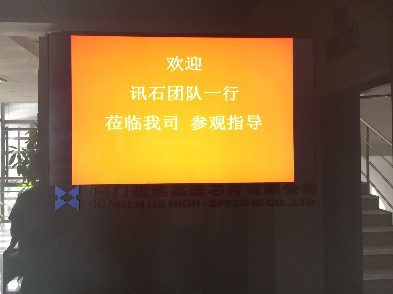 來至前臺處,熱情的優(yōu)迅早早準(zhǔn)備了電子顯示屏歡迎訊石的來訪,充分體現(xiàn)了優(yōu)迅的熱情、包容文化。在董助柯騰隆、技術(shù)總監(jiān)林永輝、產(chǎn)品總監(jiān)林少衡等的熱情介紹下,小編有幸近距離了解“中國芯”精神。目前能夠出貨國外的國內(nèi)芯片廠商,優(yōu)迅獨扛大旗!此外優(yōu)迅所有對外公布的產(chǎn)品都是以出貨為準(zhǔn),應(yīng)用到的所有知識產(chǎn)權(quán)都是自己的,有效杜絕了產(chǎn)權(quán)糾紛后患。