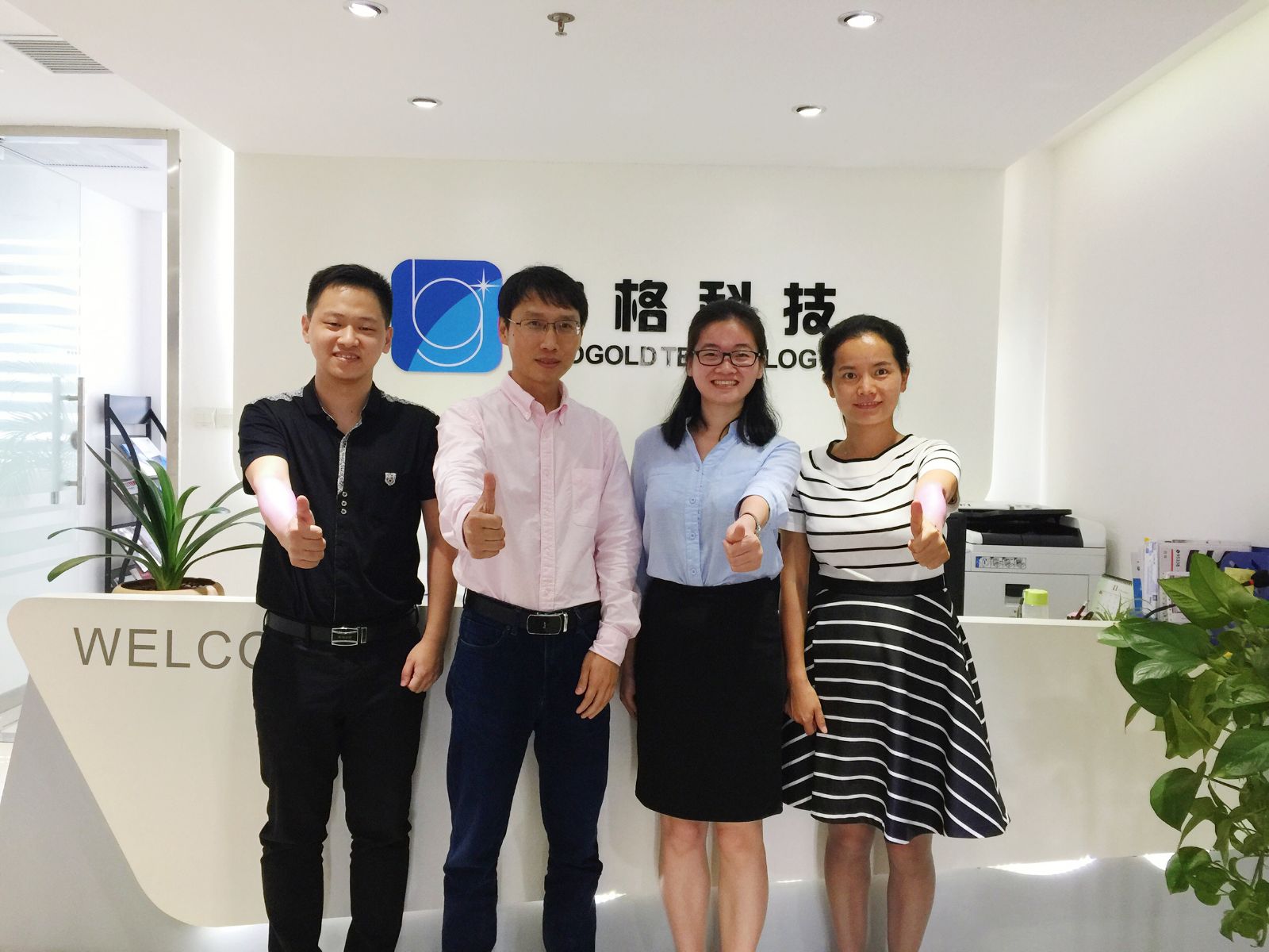 彼格總經(jīng)理羅總(左二)、人事總監(jiān)王琴(右一)與訊石記者