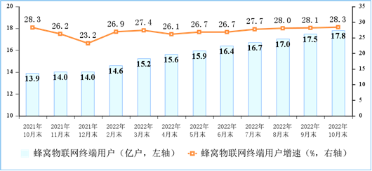 ICC訊 近日,工信部發(fā)布了《2022年1—10月份通信業(yè)經(jīng)濟運行情況》,其中公布了電信用戶發(fā)展情況。
