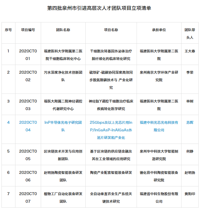 ICC訊(編輯:Aiur)近日,泉州市科技局公布了第四批引進(jìn)高層次人才團(tuán)隊(duì)項(xiàng)目立項(xiàng)結(jié)果,經(jīng)過申報(bào)、受理、初審、專家評(píng)審、現(xiàn)場考察、會(huì)議研究、公示等程序,確定立項(xiàng)項(xiàng)目七項(xiàng)。