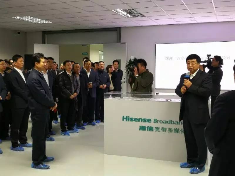ICCSZ訊 3月9日,山東省委常委、青島市委書記李群帶領(lǐng)160人“青島制造”推進大會觀摩團參觀海信智能工廠。海信集團董事長周厚健、海信寬帶多媒體公司總經(jīng)理張華向觀摩團介紹了海信寬帶公司。