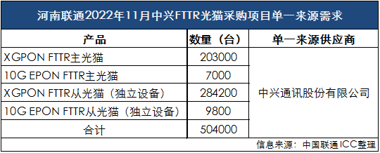 ICC訊 近日,中國(guó)聯(lián)通發(fā)布2022年11月中興FTTR光貓采購(gòu)項(xiàng)目單一來源需求公示,對(duì)中興FTTR光貓(需求編號(hào):NB37102022005791)進(jìn)行單一來源采購(gòu),采購(gòu)人為中國(guó)聯(lián)合網(wǎng)絡(luò)通信有限公司河南省分公司。