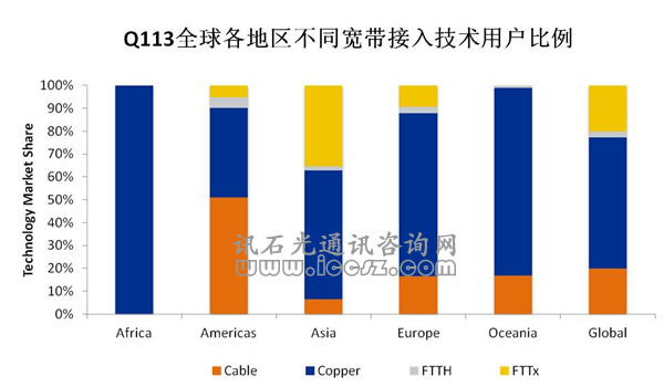 基于銅線用戶的減少主要發(fā)生在亞洲市場,同時(shí)非洲地區(qū)則是唯一一處基于銅線用戶還在增長的市場。