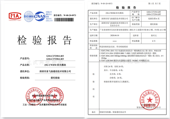 ICC訊 近日,易飛揚(yáng)送樣產(chǎn)品10G/25G 工業(yè)級彩光模塊,順利通過武漢網(wǎng)銳實(shí)驗(yàn)室檢測,獲得相關(guān)資質(zhì)許可,標(biāo)志著該系列產(chǎn)品已可完全批量應(yīng)用于電信設(shè)備市場。