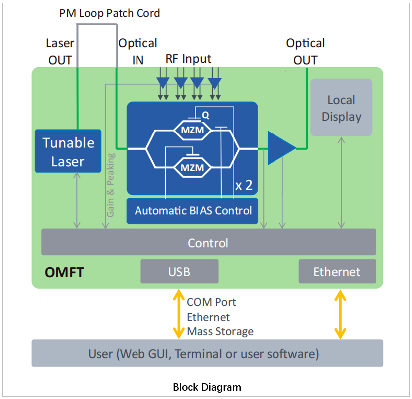 ID Photonics OMFT內(nèi)置高性能射頻放大器,可無縫適配任意波形發(fā)生器(AWG),支持差分驅(qū)動,在80 GHz帶寬下確保信號完整性和傳輸質(zhì)量。此外,該設(shè)備搭載ID Photonics自主研發(fā)的自動偏置控制(BIAS Control),可智能優(yōu)化調(diào)制性能,確保系統(tǒng)長期穩(wěn)定運行,大幅簡化實驗流程。