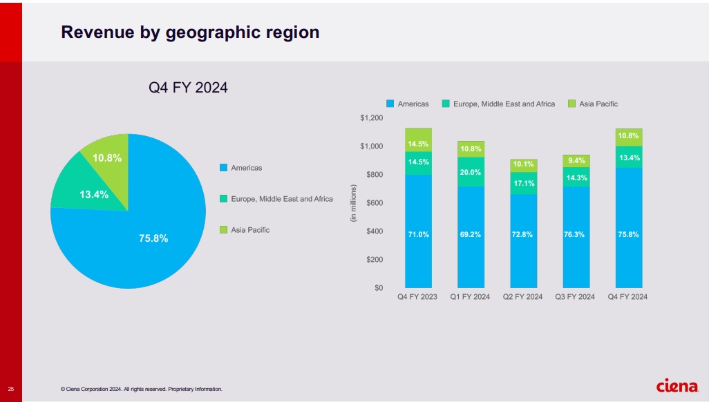 ICC訊 Ciena公布了截至 2024年11月2日的2024財年第四財季財務(wù)業(yè)績。