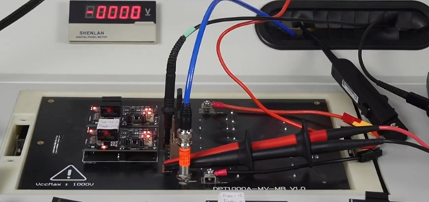 動態(tài)參數(shù)測試系統(tǒng)DPT1000A中,選用了泰克的IsoVu光隔離探頭進行上橋臂器件的測試。IsoVu光隔離探頭共模電壓高達±60kV,差分信號最高可達±2000V,帶寬最高可達1GHz,同時具有優(yōu)異的共模抑制比,在1GHz下仍可達-90dB。如此優(yōu)異的特性確保了對上橋臂器件的測試能力。