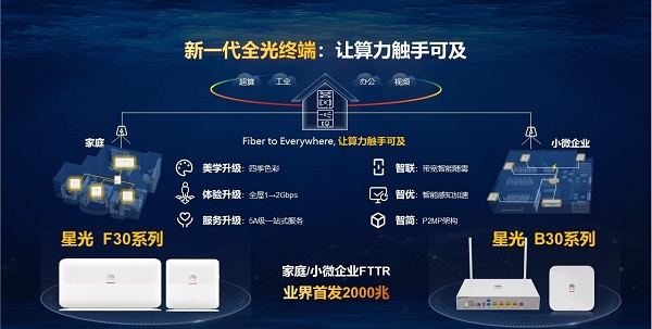 會上,華為中國運(yùn)營商業(yè)務(wù)部副總裁黃雒蒙介紹了面向家庭和小微企業(yè)的華為FTTR星光F30和B30系列產(chǎn)品,星光F30和B30憑借出色的外觀、極致的性能、智能化的管理,以及5A一站式服務(wù)能力,將帶給上海市民美好智慧生活和數(shù)字辦公體驗(yàn),能夠更好地助力光耀家庭、光耀政企的建設(shè)。