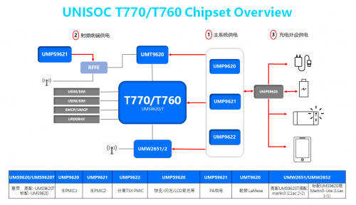 展銳第二代5G芯片平臺(tái)擁有完整5G主平臺(tái)套片+可選配的5G射頻前端套片等多達(dá)十多顆芯片,每顆芯片均已達(dá)到量產(chǎn)標(biāo)準(zhǔn)。其中5G主平臺(tái)套片包含主芯片、Transceiver、電源管理芯片以及connectivity芯片等7顆芯片;5G射頻前端套片包含PA等多顆芯片。