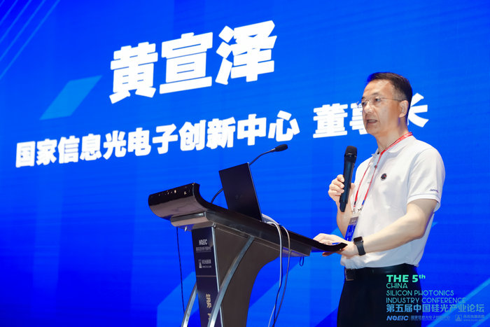 國(guó)家信息光電子創(chuàng)新中心董事長(zhǎng)黃宣澤在會(huì)上致辭表示,中國(guó)光器件產(chǎn)業(yè)已經(jīng)成為全球最大的單一市場(chǎng)和最強(qiáng)產(chǎn)業(yè)供應(yīng)鏈。光行業(yè)應(yīng)繼續(xù)發(fā)揮全產(chǎn)業(yè)鏈的技術(shù)和制造優(yōu)勢(shì),努力突破硅光技術(shù)的發(fā)展,是成為全球價(jià)值鏈頂端的關(guān)鍵,硅基光電子也是我國(guó)有望率先實(shí)現(xiàn)突破掐脖子技術(shù)的領(lǐng)域。本屆硅光產(chǎn)業(yè)鏈匯聚當(dāng)前國(guó)內(nèi)優(yōu)秀的硅光技術(shù)研究和產(chǎn)業(yè)化工作者,匯聚最強(qiáng)的硅光領(lǐng)域攻堅(jiān)力量。黃總宣布第五屆硅光產(chǎn)業(yè)論壇正式開(kāi)幕,祝愿所有光電同仁身體健康,共同進(jìn)步!