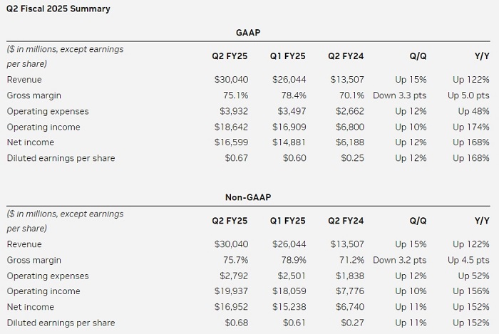 ICC訊 2024年8月28日,英偉達(dá)(NVIDIA)(納斯達(dá)克:NVDA)今天公布了其截至2024年7月28日的2025財(cái)年第二季度財(cái)務(wù)業(yè)績(jī)。