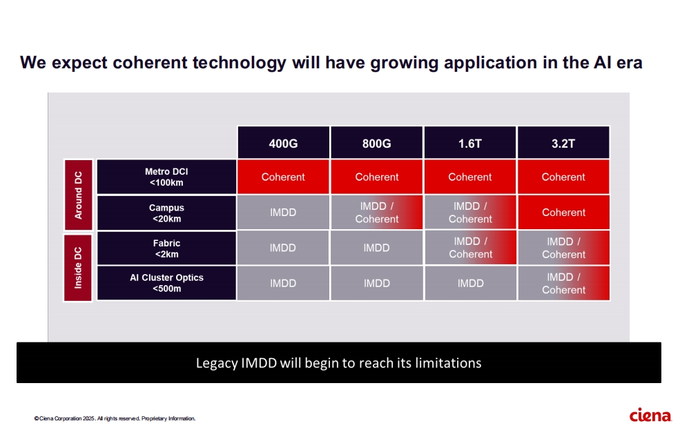 此外,Ciena 還強(qiáng)調(diào)了其在光學(xué)技術(shù)領(lǐng)域的領(lǐng)先地位。公司預(yù)計(jì)相干技術(shù)在AI時(shí)代將有更廣泛的應(yīng)用,并且正在通過創(chuàng)新產(chǎn)品來滿足市場需求。
