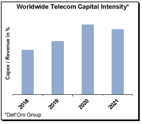 值得注意的是,有些人持有截然不同的觀點(diǎn)。例如,研究公司Dell'Oro最近預(yù)測(cè),未來(lái)三年全球電信資本支出增長(zhǎng)將超過(guò)運(yùn)營(yíng)商收入增長(zhǎng),反映出運(yùn)營(yíng)商越來(lái)越重視推出5G服務(wù)。