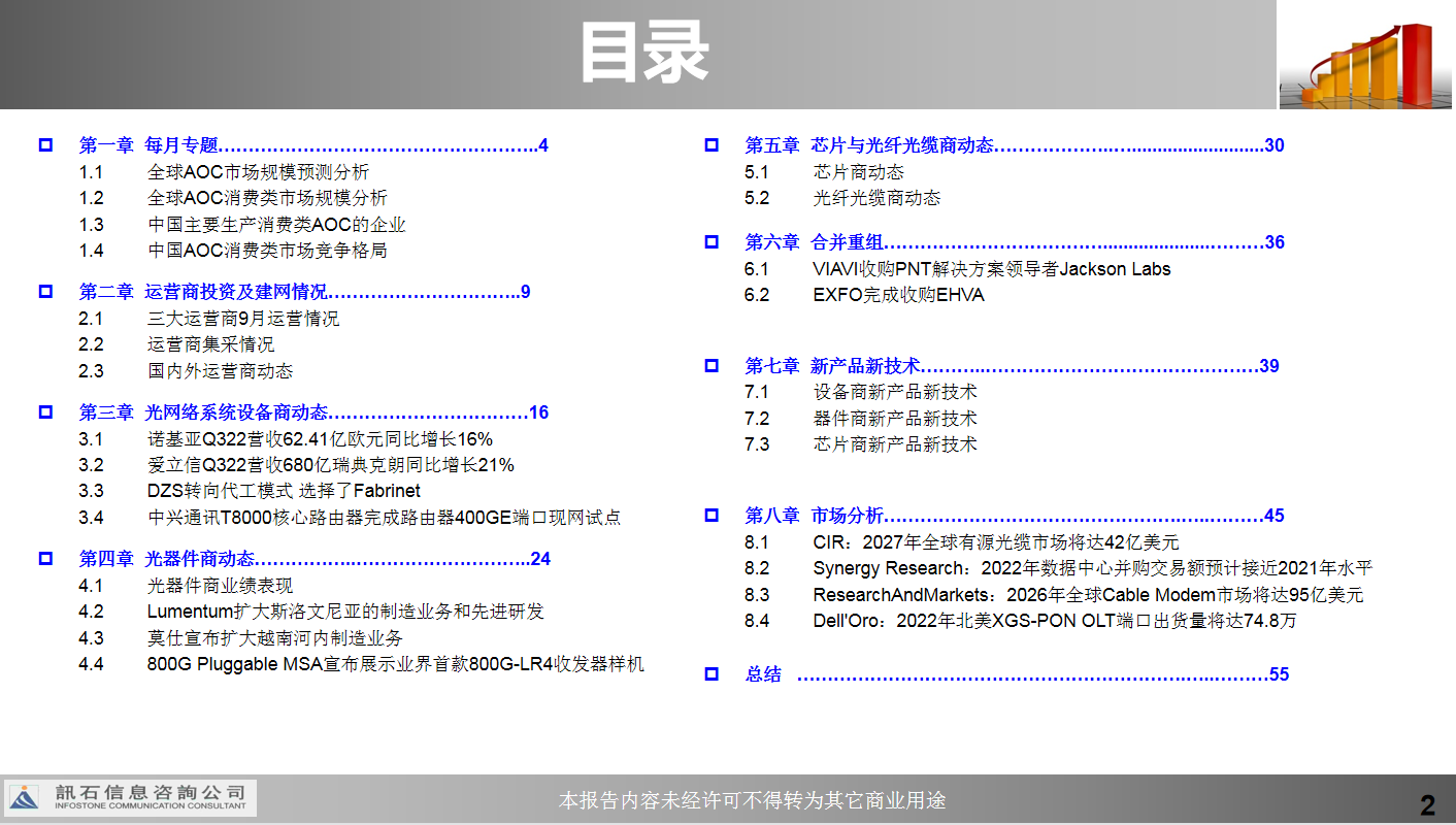 ICCSZ訊 訊石 2022年10月《全球光通訊市場動(dòng)態(tài)》專題月報(bào)出刊,會(huì)員公司可以通過網(wǎng)站登錄下載或者郵件接收。