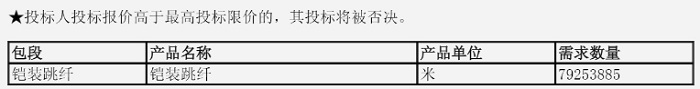 本項目為集中招標項目。本期集中采購產(chǎn)品為鎧裝跳纖產(chǎn)品,預估采購規(guī)模為鎧裝跳纖7925.39萬米。本次招標為預估規(guī)模,實際采購以采購框架協(xié)議金額為準。注:預計本項目需求滿足期為2025年至2027年,最長可順延一年。