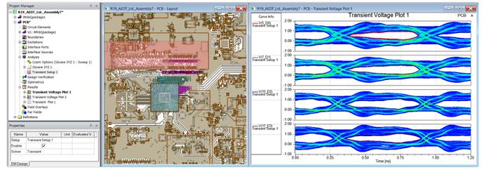圖2、 HFSS 3D Layout 多層板仿真眼圖與3D組件整合技術