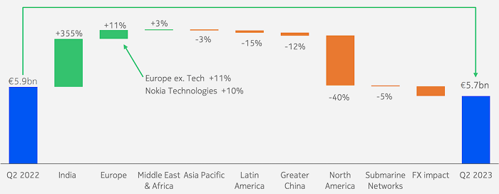 目前占公司總銷售額的46%左右的移動業(yè)務正好相反。盡管銷售額增長了1%,達到約26億歐元,固定匯率增長了5%。但該部門毛利率下降6.8個百分點,至33.4%,營業(yè)利潤率下降3.3個百分點,至7.9%。與愛立信非常相似,諾基亞的業(yè)務活動也轉向了巨大的印度市場。在印度,5G的大規(guī)模部署正在進行中,然而在早期階段,合同的利潤往往低于運營商擴容時的利潤。