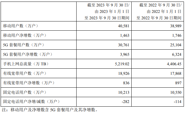 移動(dòng)通信服務(wù)方面,中國(guó)電信不斷優(yōu)化5G網(wǎng)絡(luò)覆蓋,圍繞個(gè)人數(shù)字化應(yīng)用需求,加快推進(jìn)5G應(yīng)用AI智能化升級(jí),推動(dòng)用戶規(guī)模和價(jià)值實(shí)現(xiàn)穩(wěn)健增長(zhǎng)。2023年前三季度,移動(dòng)通信服務(wù)收入為1519.16億元,同比增長(zhǎng)2.4%,移動(dòng)用戶凈增1,463萬(wàn)戶,達(dá)到約4.06億戶,5G套餐用戶凈增3965萬(wàn)戶,達(dá)到約3.08億戶,滲透率達(dá)到75.8%,移動(dòng)用戶ARPU為45.6元,同比增長(zhǎng)0.2%。