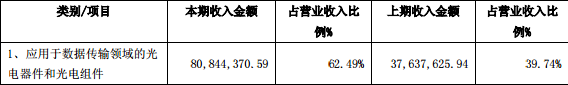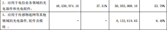 公司光器件、組件及模塊產品應用于數據傳輸、電信業(yè)務和傳感連網三大領域,其收入結構變動主要原因有以下3點: