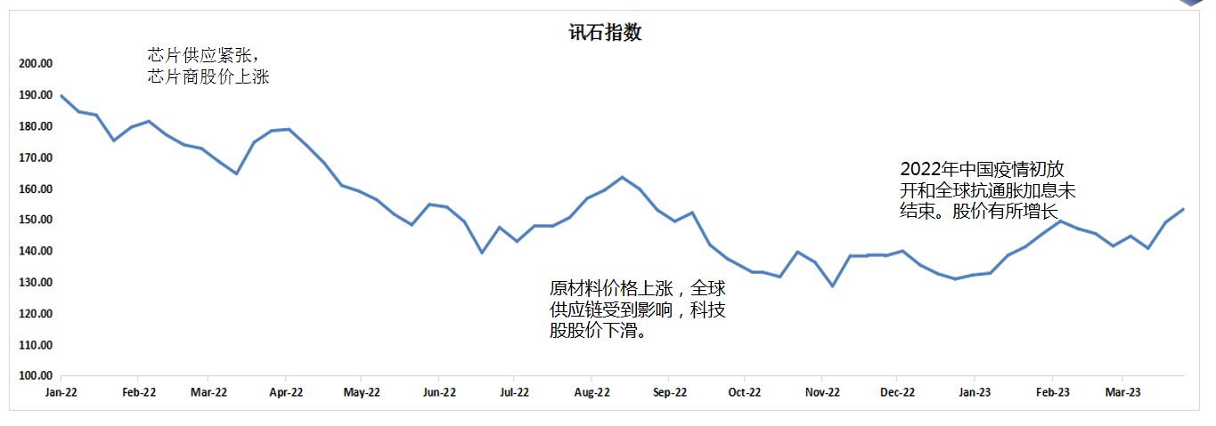 ICC訊 (編輯:Vicki)截止到3月31日,ICC統(tǒng)計的通信指數值為153.29,比上月的145.52增長7.77。以 ChatGPT 為代表的 AI 應用正快速發(fā)展,并進行著快速迭代,有望賦能多行業(yè)多樣化新型應用落地。運營商數字化業(yè)務發(fā)展迅速,設備商加大在算力側投資,光纖光纜價格回穩(wěn),器件需求隨著數通建設而走強,芯片股指保持強勁。訊石股指3月增長,強于市場。