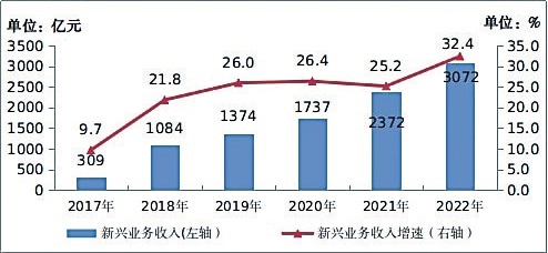 圖4 2017—2022年新興業(yè)務(wù)收入發(fā)展情況
