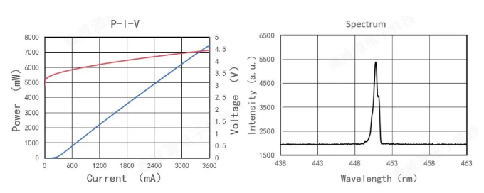 據(jù)悉,在項(xiàng)目團(tuán)隊(duì)的不懈努力下,鑫威源廠房竣工后迅速完成了超過一百臺(tái)套制造設(shè)備的安裝和調(diào)試,成功打通了芯片制造產(chǎn)線。在廠區(qū)內(nèi),公司完成了相關(guān)技術(shù)能力的轉(zhuǎn)移,并順利進(jìn)行了產(chǎn)品試驗(yàn)生產(chǎn)。今年9月,武漢鑫威源實(shí)現(xiàn)了藍(lán)光450 nm激光芯片的重大技術(shù)突破:閾值電流小于 0.25 A,功率大于7 W@3.5 A,光電轉(zhuǎn)換效率WPE達(dá)到45%,芯片綜合技術(shù)指標(biāo)處于國內(nèi)頂尖水平。產(chǎn)品技術(shù)可以滿足市場對(duì)大功率氮化鎵半導(dǎo)體激光器的應(yīng)用要求,為后續(xù)的量產(chǎn)奠定了堅(jiān)實(shí)的基礎(chǔ)。