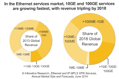 *Infonetics預測2013至2018年之間以太網服務基于10GE和100GE將增長300%。