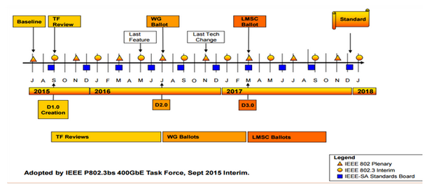 圖1 IEEE 802.3bs標(biāo)準(zhǔn)制定時(shí)間計(jì)劃表