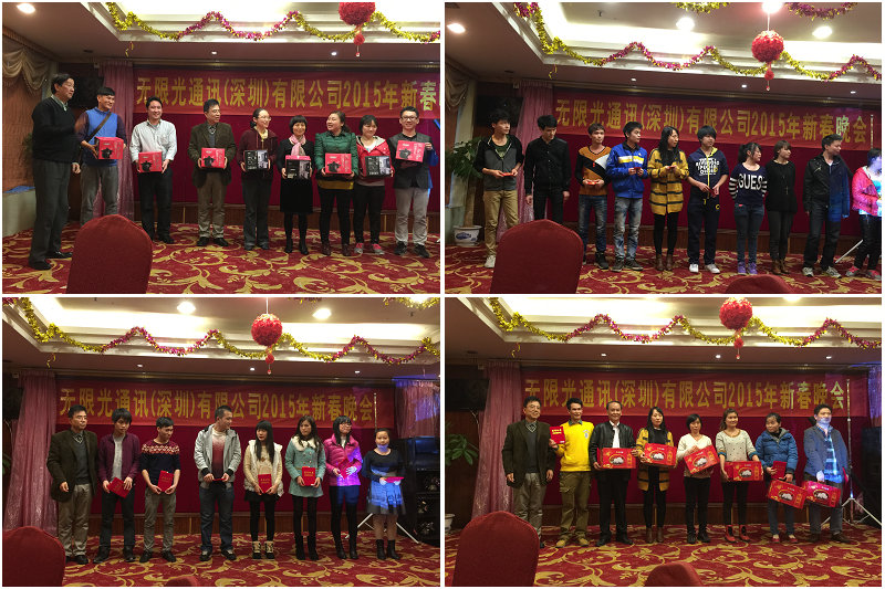 摘要:2015年2月7日,無限光通訊(深圳)有限公司(簡稱“無限光通訊”)2015年迎春晚會圓滿舉辦。激動人心的抽獎環(huán)節(jié)、精彩絕倫的節(jié)目表演不斷把現(xiàn)場氣氛推向高潮。