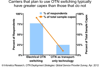 Schmitt補(bǔ)充說:“最值得注意的是,我們采訪的服務(wù)供應(yīng)商中,約四分之三計(jì)劃部署OTN交換---這代表了所有受訪者90%的CAPEX,這意味著運(yùn)營商大部分光網(wǎng)絡(luò)投資將用于OTN交換。”