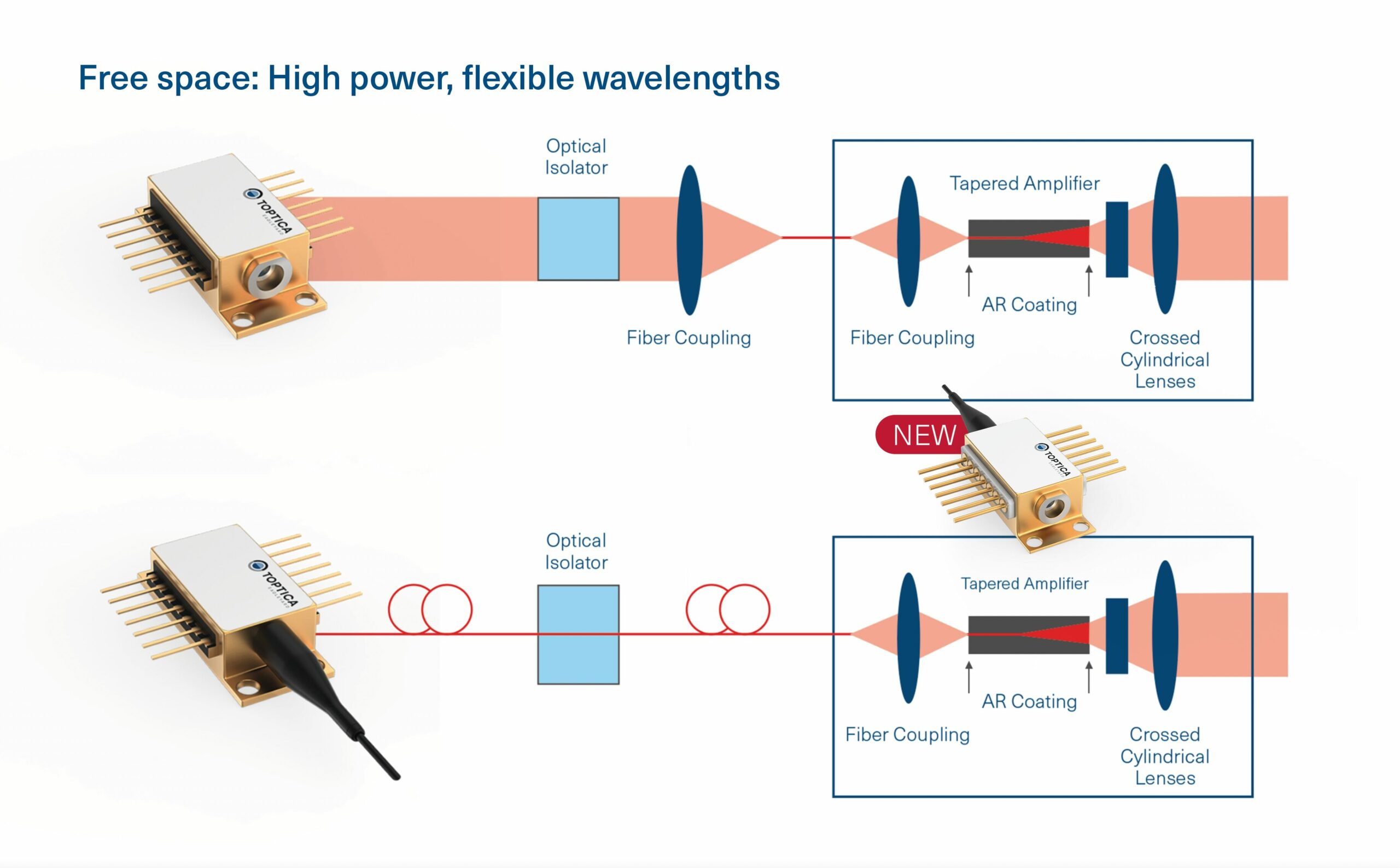 ICC訊 TOPTICA Eagleyard 是全球領(lǐng)先的高功率半導(dǎo)體激光二極管供應(yīng)商。產(chǎn)品波長覆蓋近紅外波段630 nm - 1120 nm等。TOPTICA Eagleyard的產(chǎn)品結(jié)合了高功率、出色的可靠性、卓越的光束質(zhì)量等特點,完美適配量子精密測量領(lǐng)域的高精尖應(yīng)用。特別是單頻激光器(DFB&mini ECL),可提供較窄的線寬,與錐形放大器(TA)相結(jié)合,在保持種子光優(yōu)秀光譜特性的同時,輸出功率可達(dá)幾瓦。同時,400nm-600nm藍(lán)光和紅光單頻窄線寬半導(dǎo)體激光管也在加速布局中。