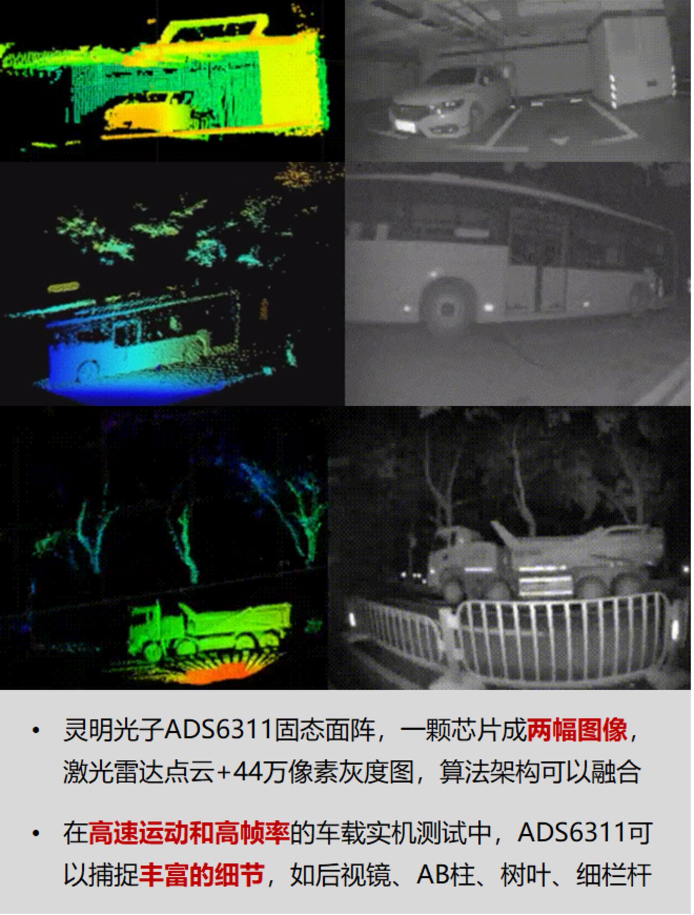2023年8月,靈明光子正式發(fā)布SPADIS面陣型ADS6311芯片,廣泛適用于車載、機器人等純固態(tài)激光雷達領域。公司擁有業(yè)內(nèi)前沿的大尺寸面陣SPADIS產(chǎn)品規(guī)劃與參數(shù)定義能力,ADS6311芯片芯片感光區(qū)域配備了768x576個SPAD,每3x3個SPAD組成一個超像素,從而實現(xiàn)了256x192的點云分辨率,是目前市場上分辨率頂級的純固態(tài)激光雷達SPADIS芯片之一。作為純固態(tài)激光雷達的核心部件,SPADIS面陣傳感器芯片的研發(fā)具有定義整機系統(tǒng)性能上限的戰(zhàn)略意義。未來的激光雷達將在形態(tài)上接近3D攝像頭,基于3D堆疊的SPADIS芯片、發(fā)射端和鏡頭,從而使得車載與工業(yè)激光雷達從一個有動件的精密儀器進化為一個可大規(guī)模量產(chǎn)的器件。當前,靈明光子該款車規(guī)級芯片已獲得多家國際激光雷達廠商與汽車主機廠的高度認可和合作訂單。