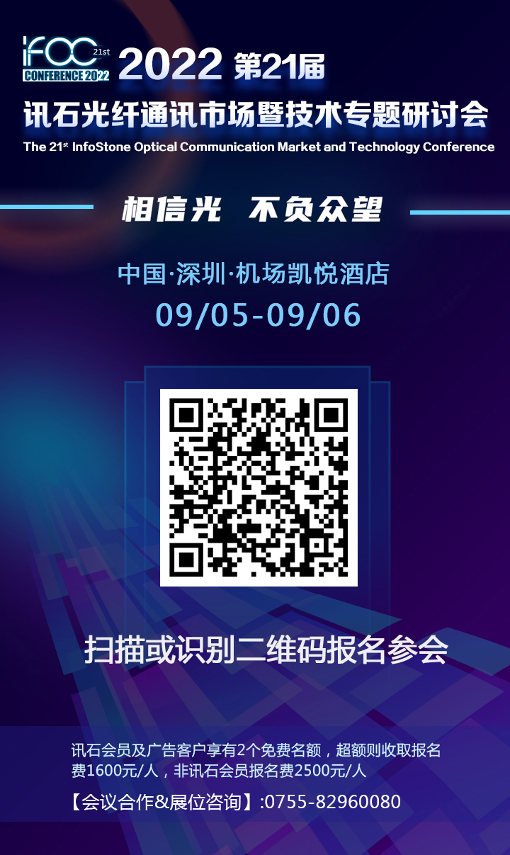 ICC訊 2022年9月5-6日,第21屆訊石光纖通訊市場暨技術(shù)專題研討會(The 21st Infostone Optical Communication Market and Technology Conference,簡稱“IFOC”、“訊石研討會”)邀您共聚深圳機(jī)場凱悅酒店(地址:深圳市寶安國際機(jī)場空港八道8-12號),從七大專題深入探討覆蓋整個光通訊市場的全面內(nèi)容,層層遞進(jìn)式分析技術(shù)發(fā)展趨勢,深度融入熱點(diǎn)話題為行業(yè)發(fā)展注入新鮮力量。