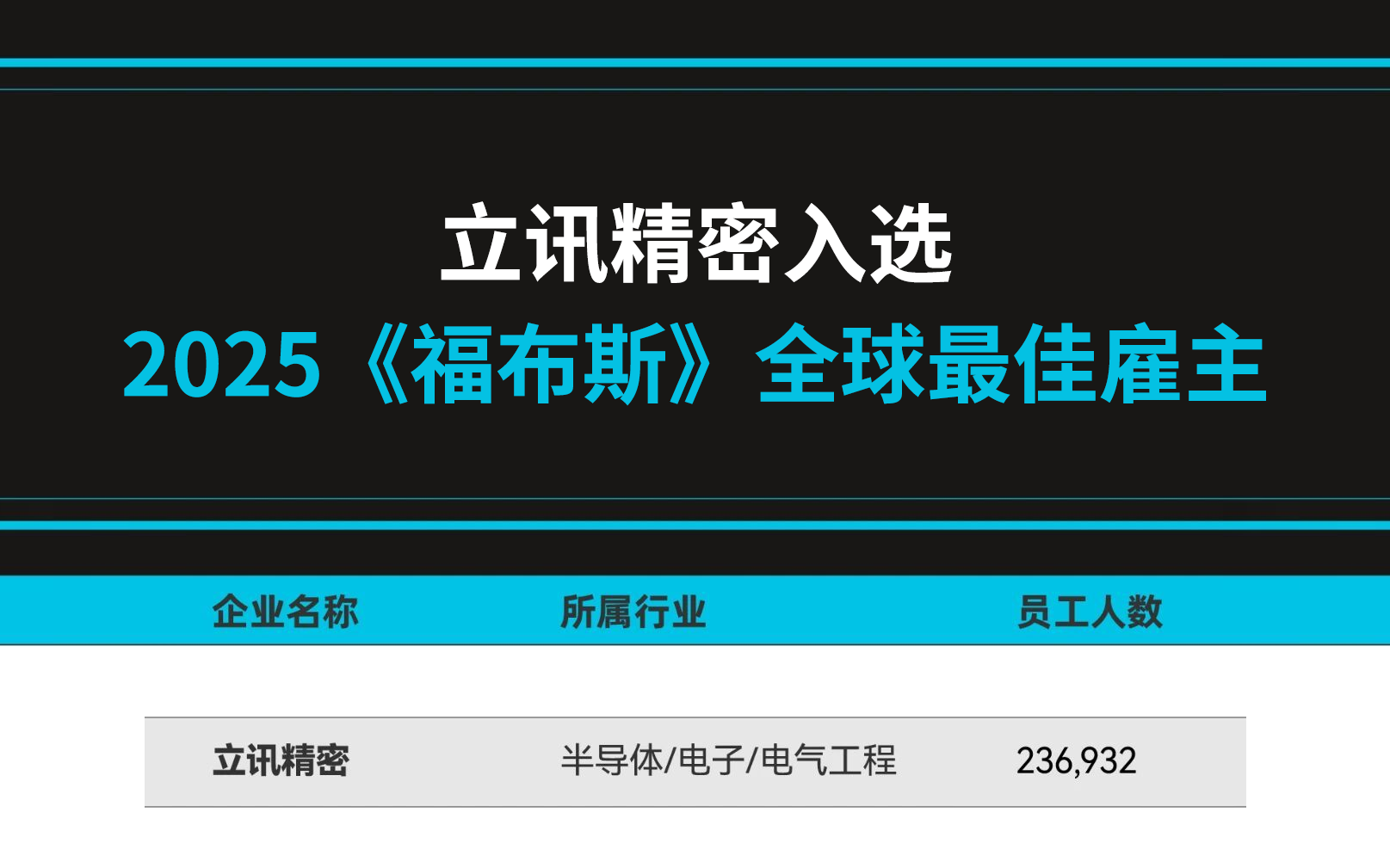 ICC訊 近日,全球權(quán)威財(cái)經(jīng)媒體《福布斯》正式發(fā)布 2025 年全球最佳雇主榜單,立訊精密成功入選。