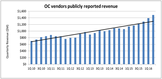 Iccsz訊(編譯:Aiur) 領(lǐng)先的光器件供應(yīng)商們Q216營收首次突破了14億美元,同比Q215增長了27%。LightCounting稱,主要的19家供應(yīng)商中有9家創(chuàng)下了營收新記錄。根據(jù)分析,中國100G快速發(fā)展,北美ROADM建設(shè)以及超大規(guī)模數(shù)據(jù)中心的擴張共同推動了光器件需求增長。