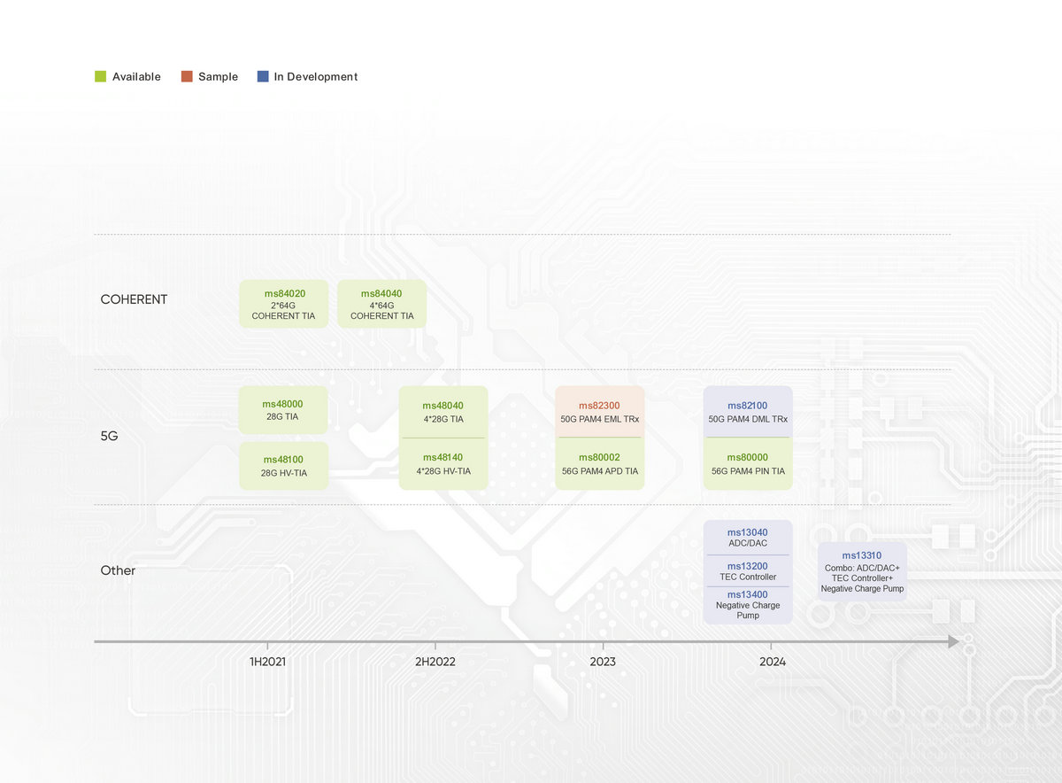隨著產(chǎn)品系列不斷擴(kuò)充,米硅科技還提供高性能5G收發(fā)電芯片、專為光模塊設(shè)計(jì)的MCU及專用clockbuffer以滿足客戶特別需求。