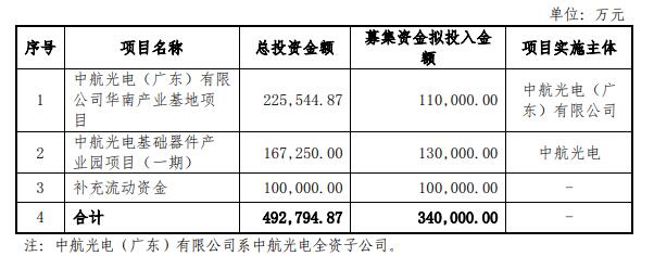募集資金的基本情況為,中航光電非公開發(fā)行人民幣普通股 35,576,016 股,共計(jì)募集資金總額3,399,999,991.23 元,扣除與發(fā)行有關(guān)的費(fèi)用(不含稅)人民幣 7,080,188.68 元,實(shí)際募集資金凈額為人民幣3,392,919,802.55 元。使用計(jì)劃如下: