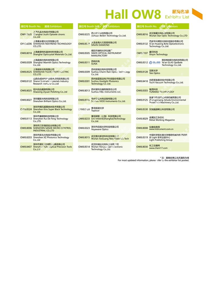 收藏!第十八屆慕尼黑上海光博會展商名單