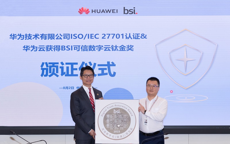 BSI亞太區(qū)董事總經(jīng)理林勁為華為云鈦金獎頒證