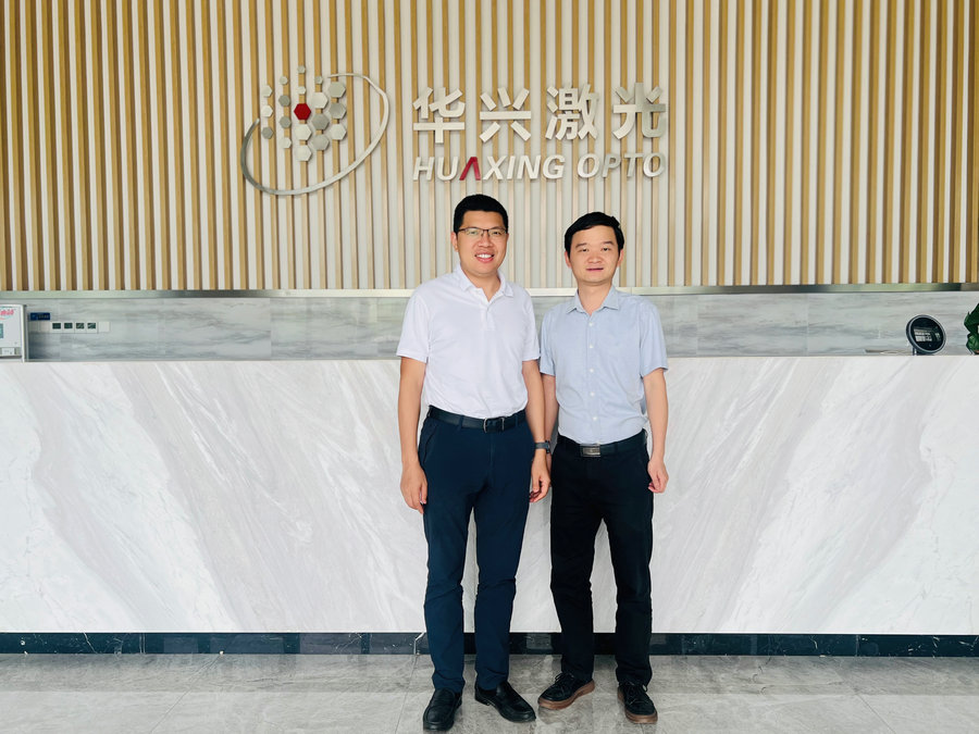 華興激光總經(jīng)理羅帥博士(左)接受訊石采訪