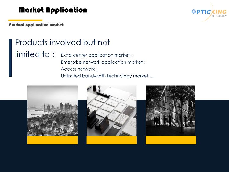 主要產(chǎn)品有:光模塊 光纖跳纖 MPO/MTP PLC分路器 尾纖 適配器 快速連接器 終端盒等