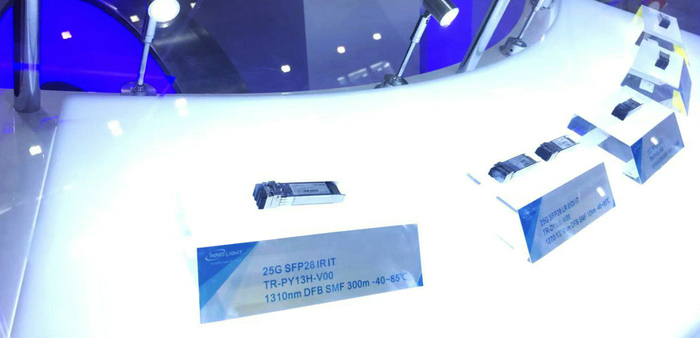 ICCSZ訊(編輯:Aiur) 9月5日,第21屆中國(guó)光電國(guó)際博覽會(huì)正式開(kāi)幕,全球光模塊領(lǐng)導(dǎo)蘇州旭創(chuàng)科技有限公司展示業(yè)界領(lǐng)先的400G QSFP-DD系列高速光通信模塊和服務(wù)于下一代無(wú)線(xiàn)網(wǎng)絡(luò)系列高速光模塊,并在現(xiàn)場(chǎng)演示了400G QSFP-DD FR4、400G QSFP-DD SR8、100G SFP-DD AOC等產(chǎn)品。
