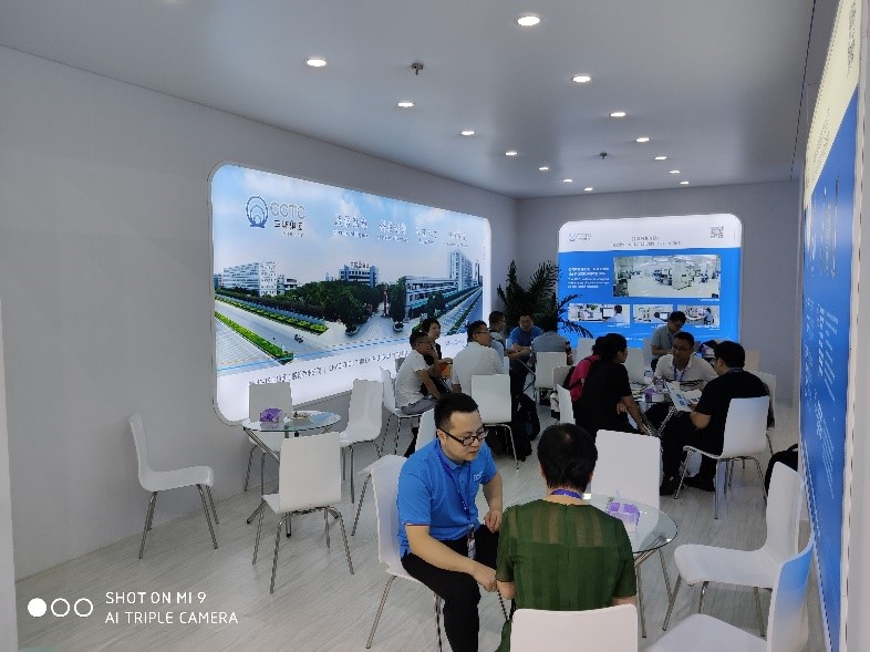 ICCSZ訊 9月5日,CIOE 2019展會第二天,訊石拜訪潮州三環(huán)(集團(tuán))股份有限公司(簡稱:潮州三環(huán)集團(tuán))位于1號館展位1B30,與銷售總監(jiān)林豐源進(jìn)行交流。