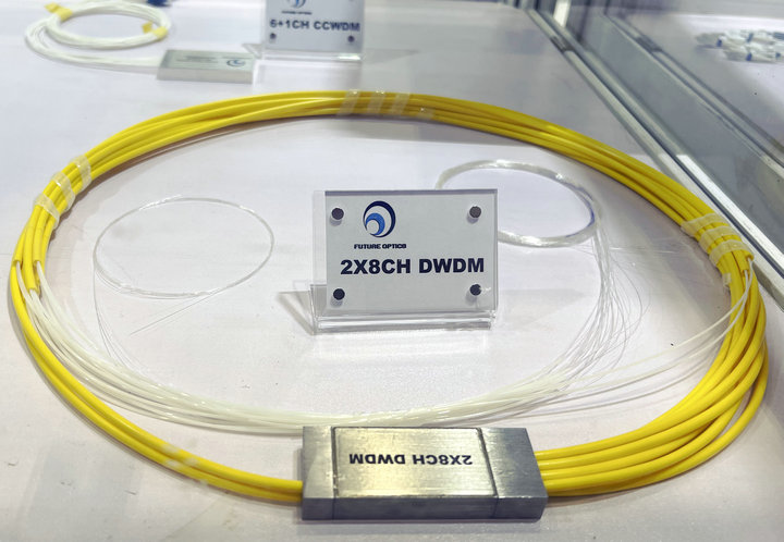 本次富光的特色展出產(chǎn)品:自由空間波分復(fù)用器件UC-CWDM/LWDM/DWDM和帶波分復(fù)用功能的可分支光纜Breakout cable。它采用激光焊接封殼和微型金屬管抗光纖側(cè)拉保護(hù)封孔的專利設(shè)計(jì),具有超低插損、超小尺寸、超高波長精度、超寬溫度范圍的特性,是構(gòu)建高帶寬、低時(shí)延、廣鏈接綠色光網(wǎng)絡(luò)的創(chuàng)新波分復(fù)用產(chǎn)品。